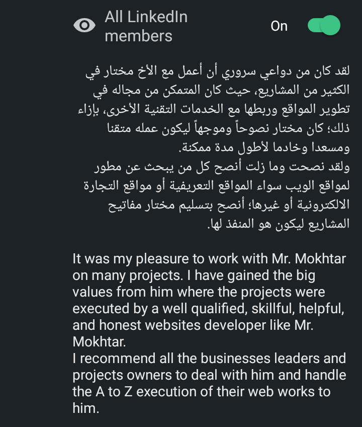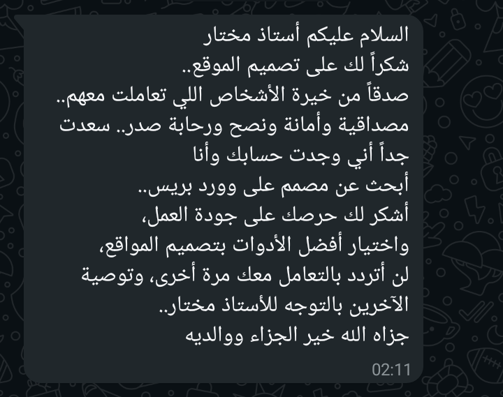 الحمد لله كسبت عملاء محترفين وذوي همم عالية عملت معهم وكان لهم آراء طيبة وقوية ورضا كبير عن عملي.