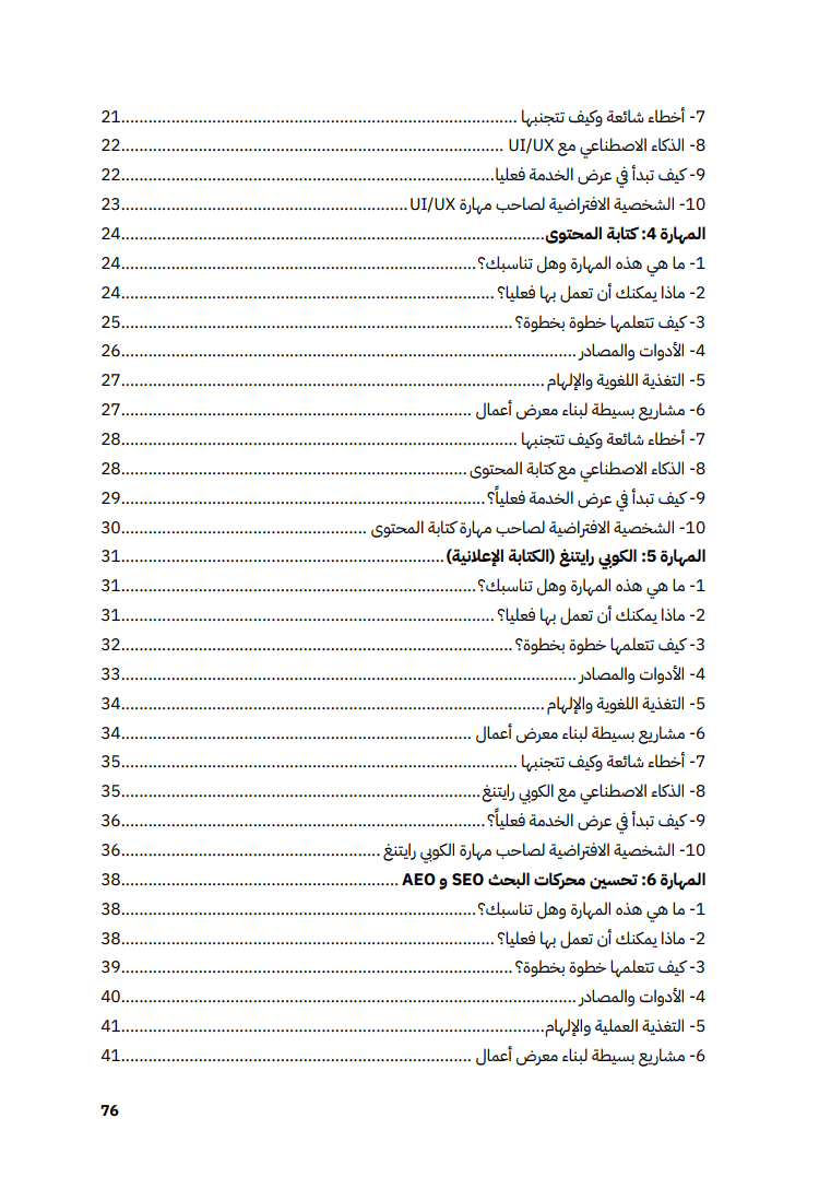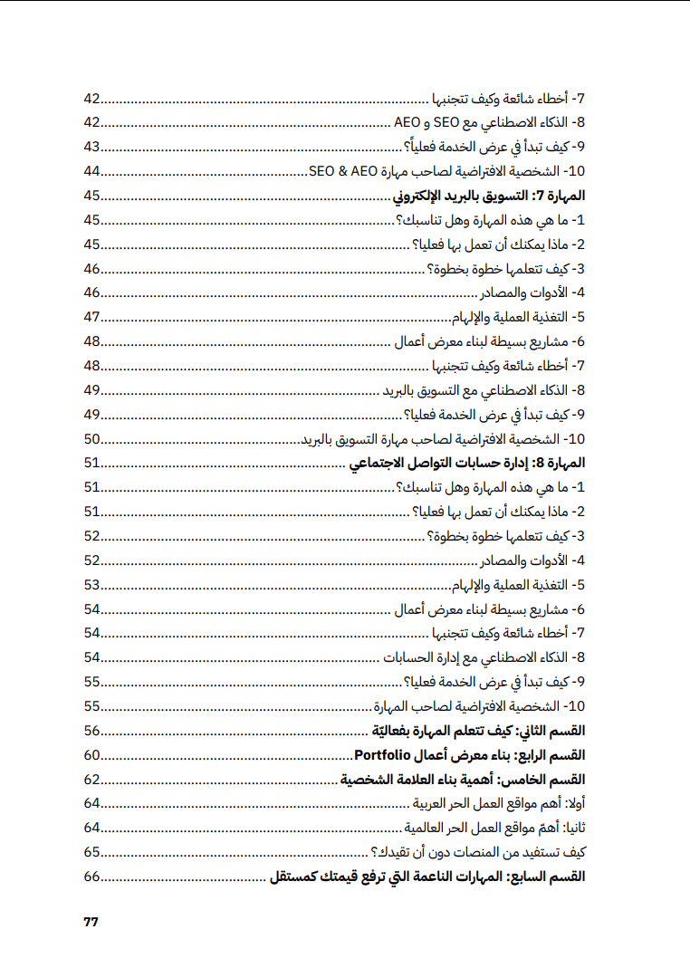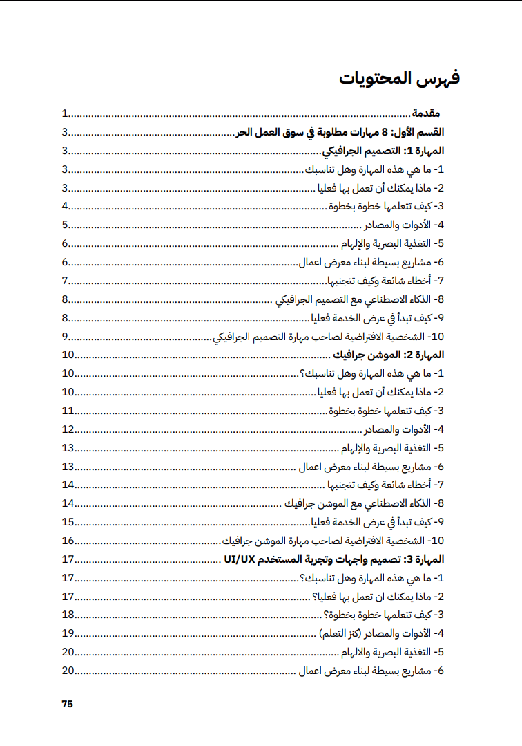 كل مهارة في الدليل تأتي بهيكل موحّد يجعل تعلم العمل الحر سهلاً وعمليا:
