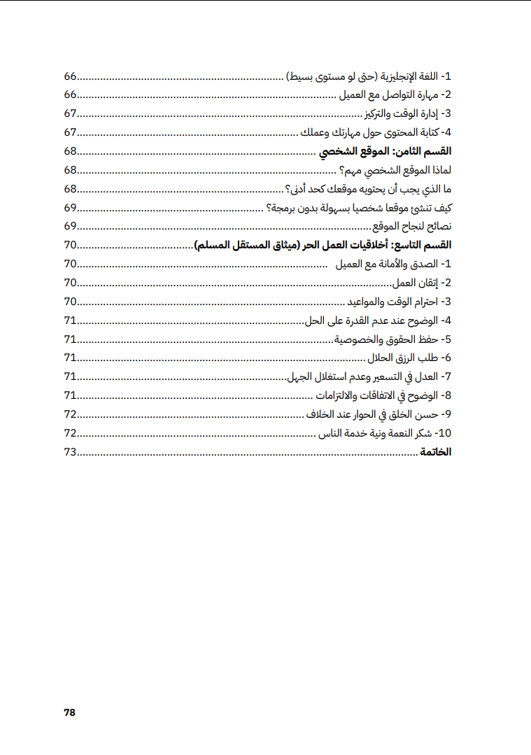 ملاحظة: هذا المقال مُلخّص من دليل الانطلاق في العمل الحر 2026. الكتاب يحتوي تفاصيل مصادر التعلم، خطط المشاريع، أخطاء المبتدئين، وتنبيهات شرعية…